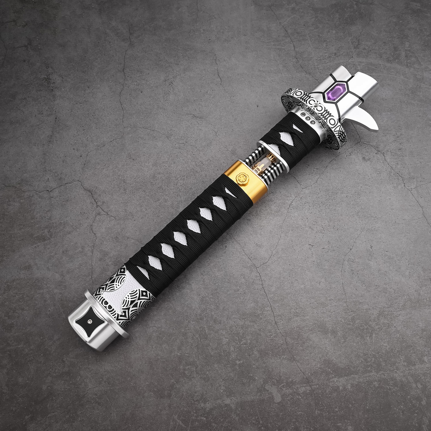 Вся внутренняя электроника светового меча имеет модульную конструкцию, что значительно уменьшает шанс ее повреждения внутри рукоятки при активных боях. Питание осуществляется от съемного литий-ионного аккумулятора типоразмера 18650 (поставляется в комплекте), зарядка которого осуществляется через разъем на корпусе или на шасси светового меча с помощью стандартного телефонного адаптера напряжением 5 Вольт.