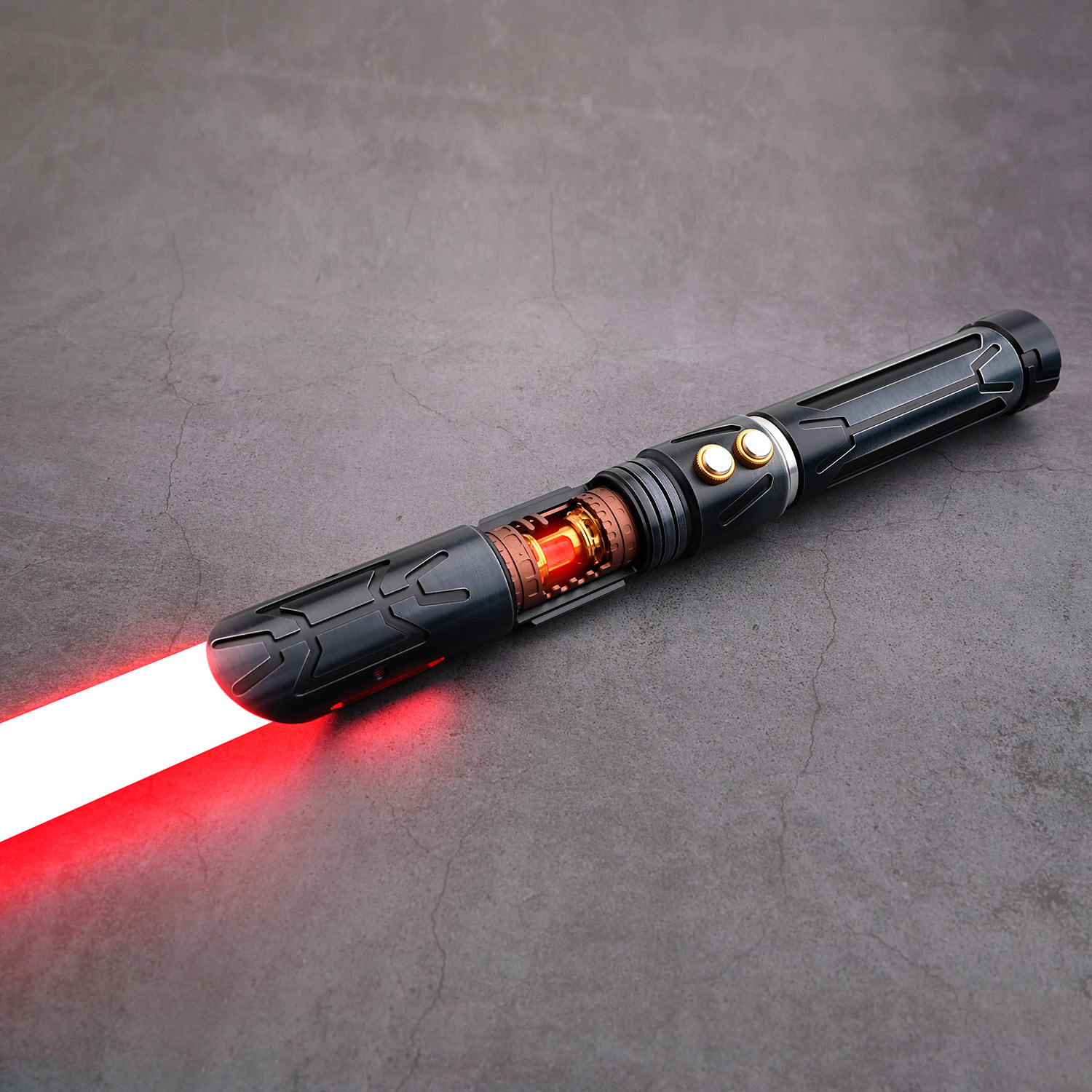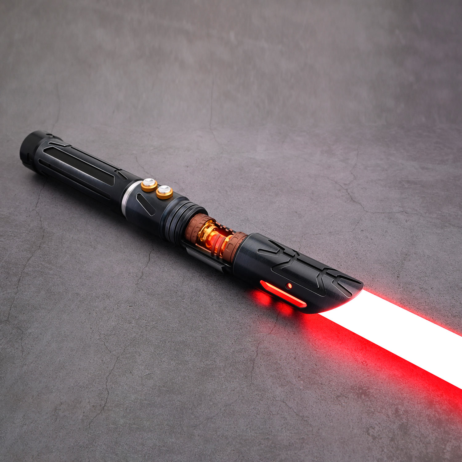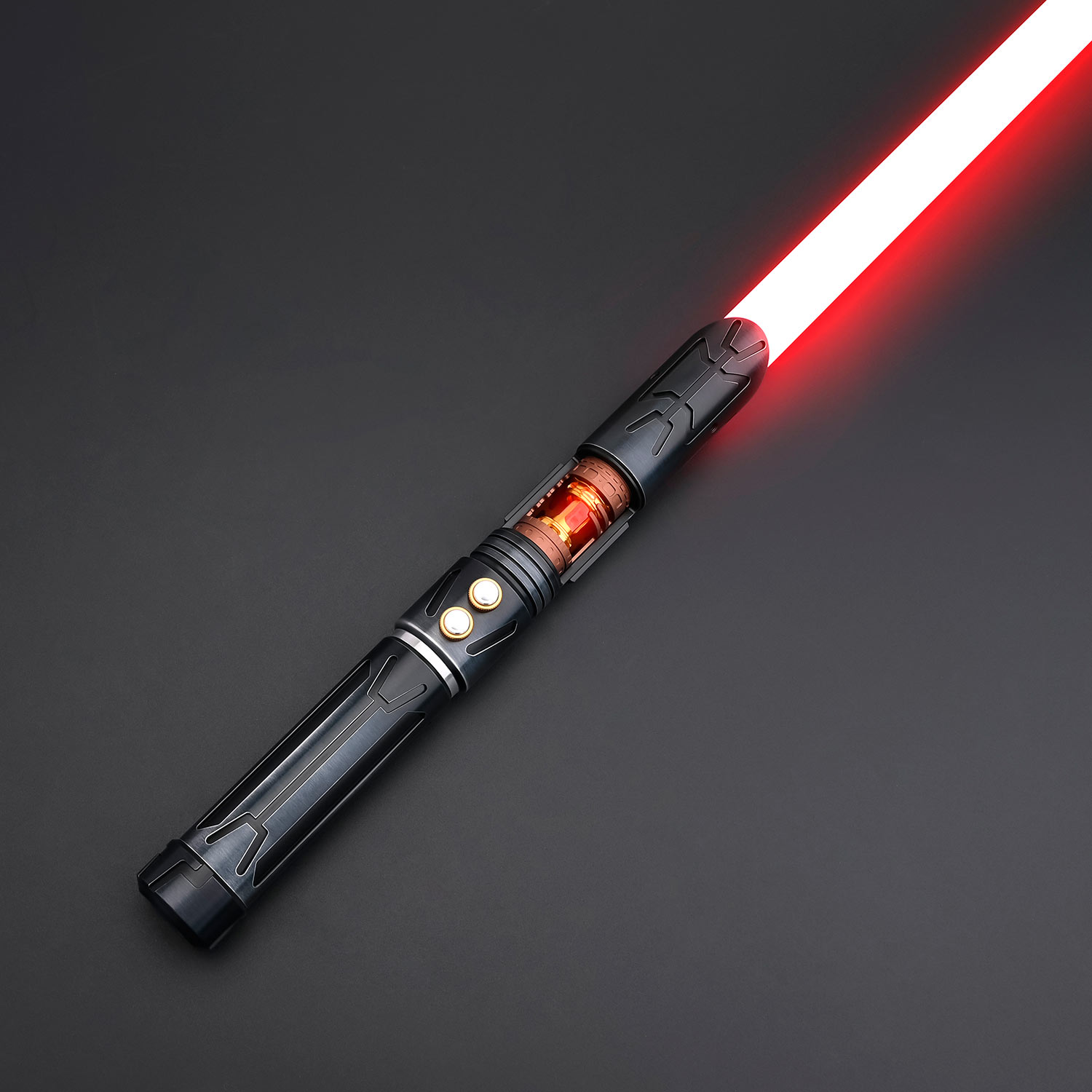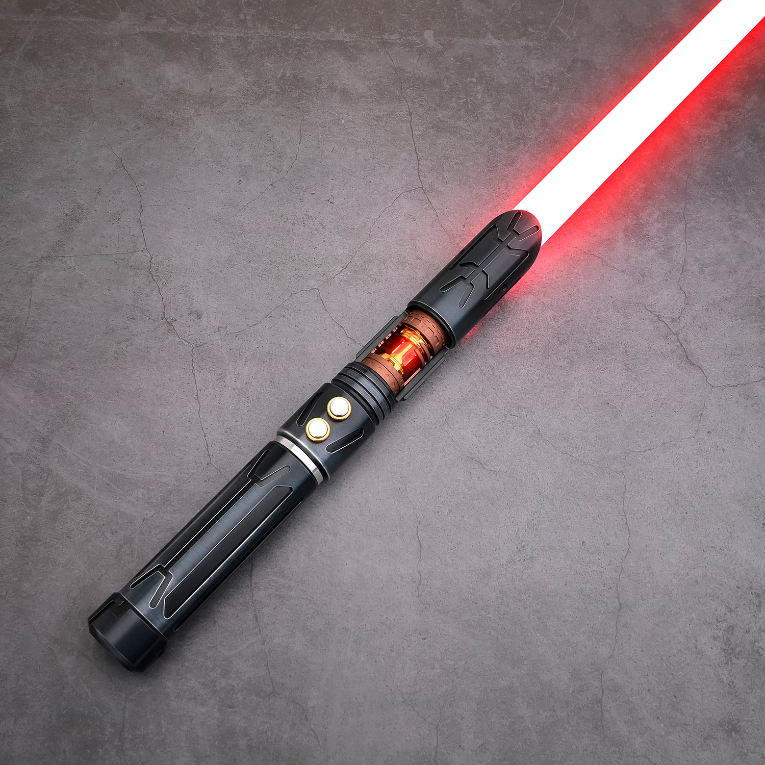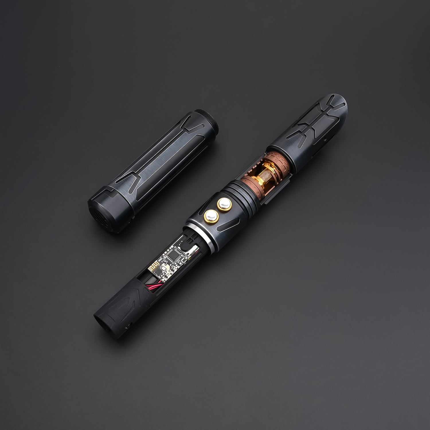 Вся внутренняя электроника светового меча имеет модульную конструкцию, что значительно уменьшает шанс ее повреждения внутри рукоятки при активных боях. Питание осуществляется от съемного литий-ионного аккумулятора типоразмера 18650 (поставляется в комплекте), зарядка которого осуществляется через разъем на корпусе или на шасси светового меча с помощью стандартного телефонного адаптера напряжением 5 Вольт.